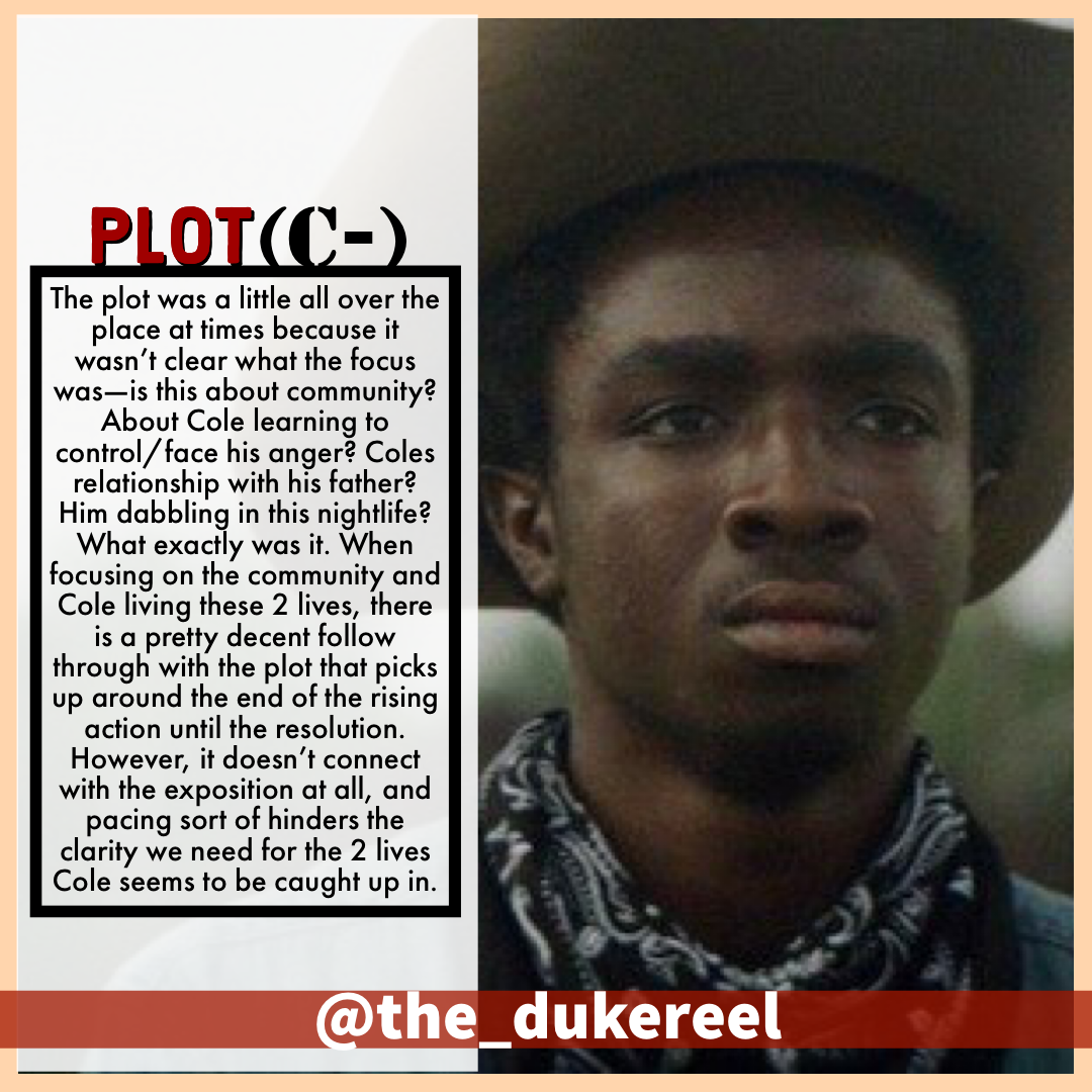 Below are my grades for key components in #ConcreteCowboy that I find to be key in any story/film—Theme, Plot, Pacing, and Character Arc/Development.