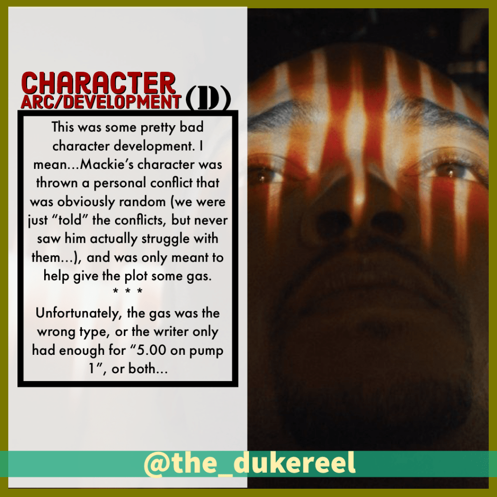 7. This was some pretty bad character development. I mean…Mackie’s character was thrown a personal conflict that was obviously random (we were just “told” the conflicts, but never saw him actually struggle with it…), and was only meant to help give the plot some gas. Unfortunately, the gas was the wrong type, or the writer only had enough for “5.00 on pump 1”, or both…🤦🏾♂️👎🏾