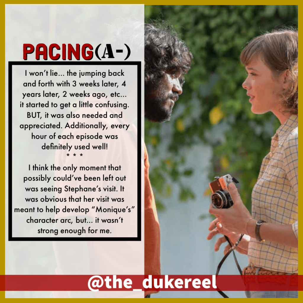 12. I think the only moment that possibly could’ve been left out, in reference to the pacing, was seeing Stephane’s visit. It was obvious that her visit was meant to help develop “Monique’s” character arc, but… it wasn’t strong enough for me. 🤷🏾♂️👎🏾