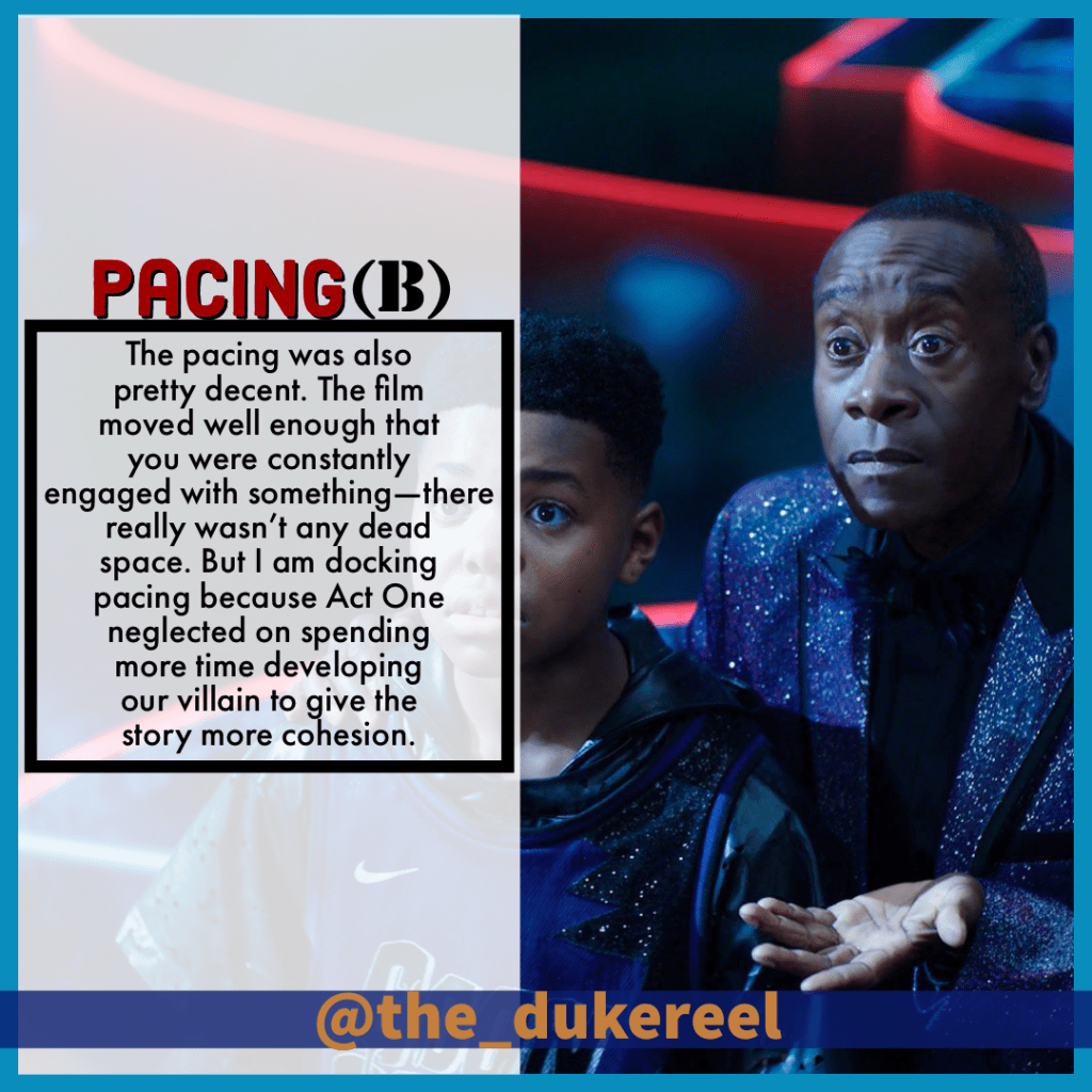 14. The pacing was also pretty decent. The film moved well enough that you were constantly engaged with something—there really wasn’t any dead space. But I am docking pacing because Act One neglected on spending more time developing our villain to give the story more cohesion. 🤷🏾♂️