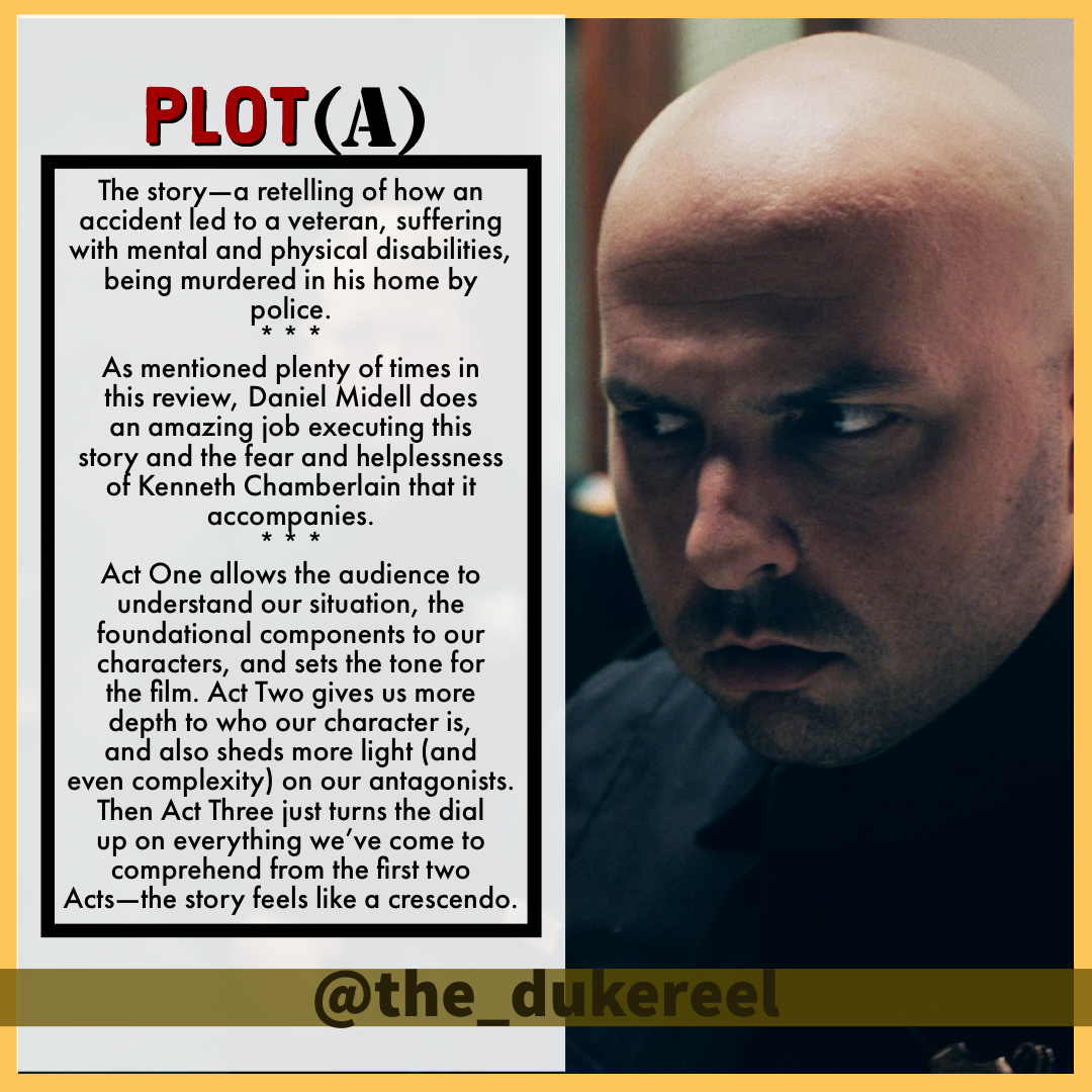 Below are my grades for key components in #TheKillingOfKennethChamberlain that I find to be key in any story/film/series—Theme, Plot, Pacing, and Character Arc/Development.
