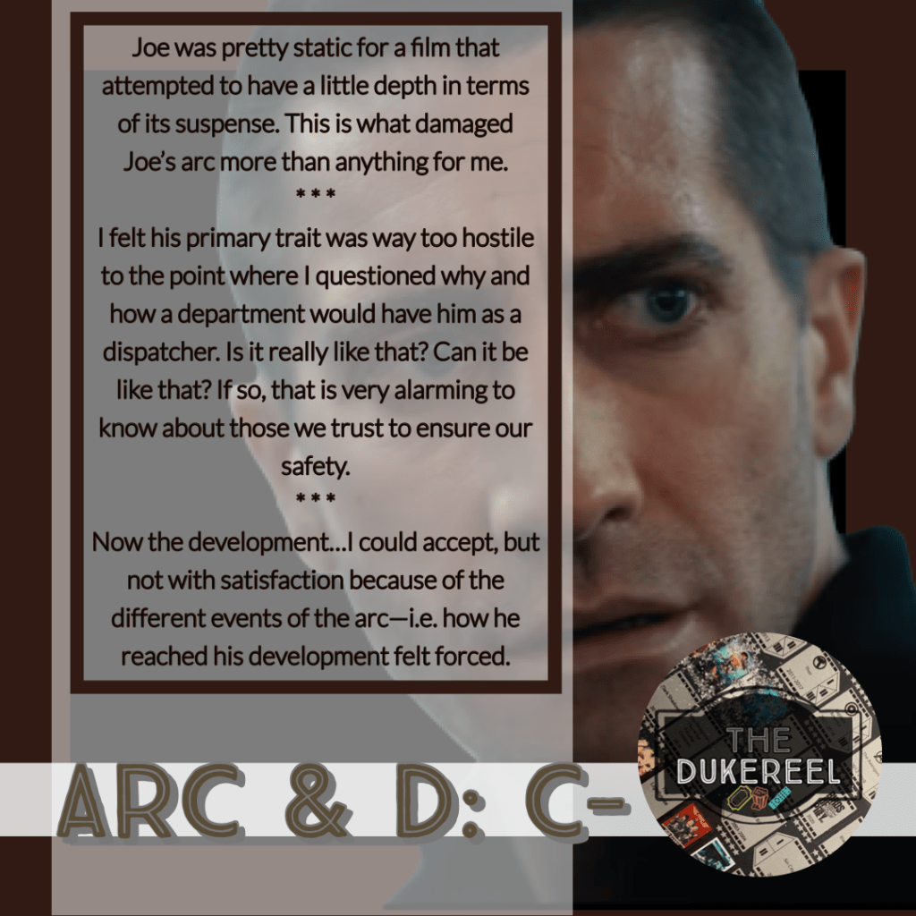 1. Let’s get the good out the way—the pacing. The film does a pretty decent job keeping you attentive—whether it’s because you really want to understand what the hell is Joe’s problem (which is anticlimactic), or because you end up invested in the “call” that sets this story in motion (and Jake Gyllenhaal definitely does a great job with delivering this character).👏🏾👏🏾👏🏾👍🏾