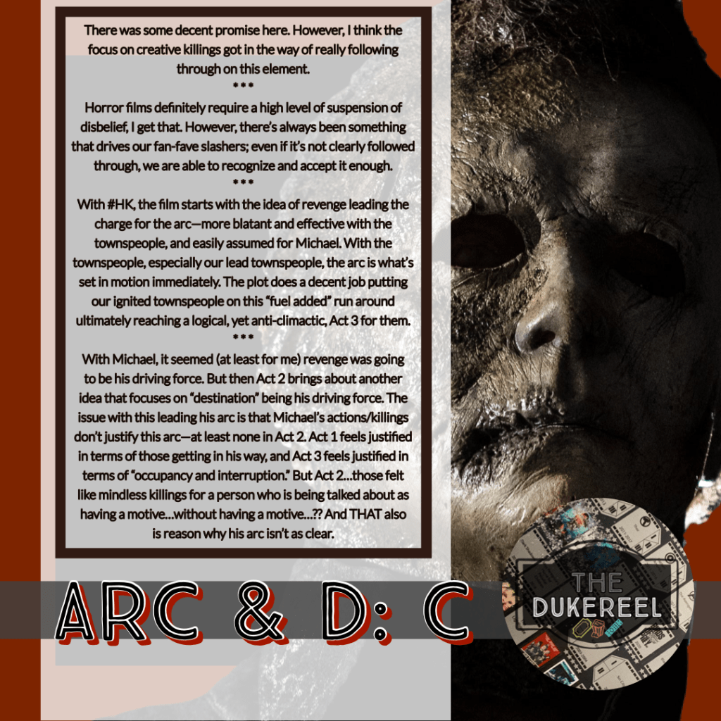 Below are my grades for key components in #HalloweenKills that I find to be key in any story/film/series—Theme, Plot, Pacing, and Character Arc/Development.