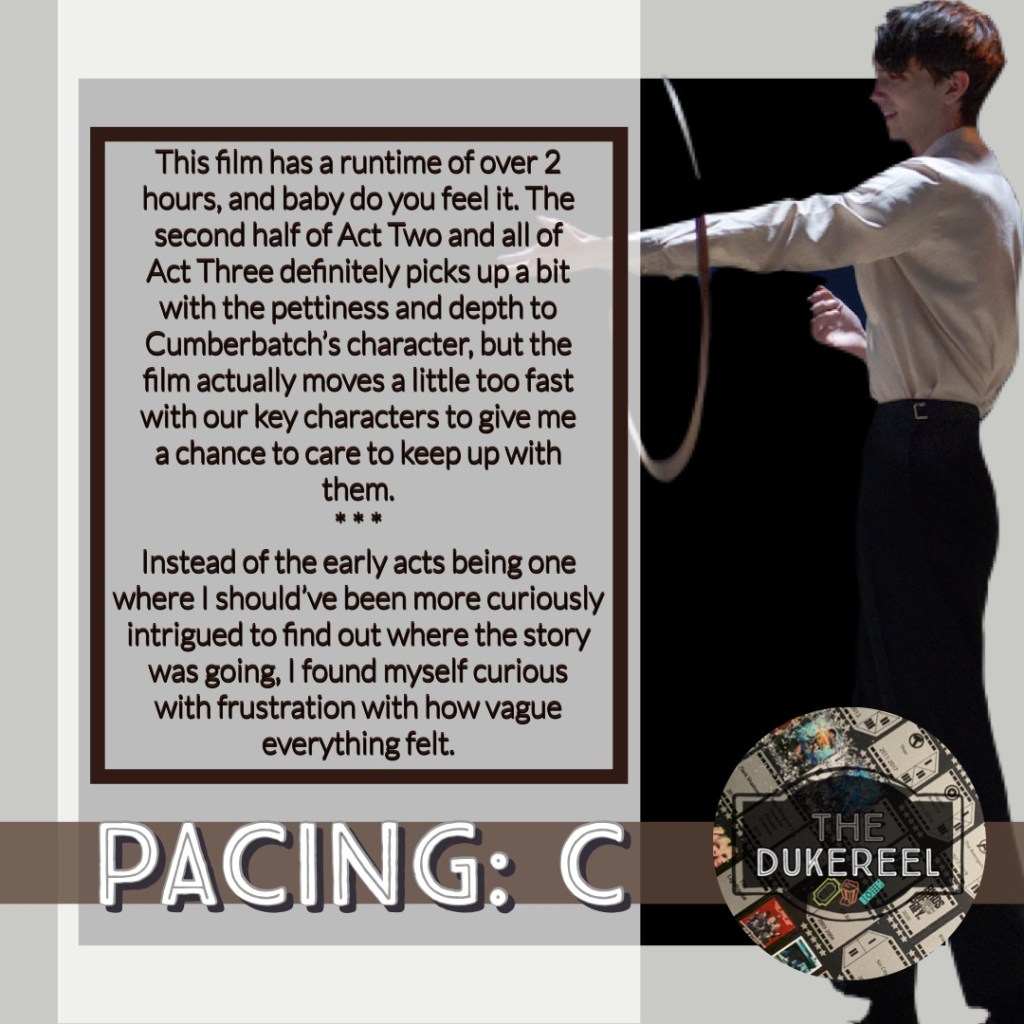 3. This film has a runtime of over 2 hours, and baby do you feel it. The second half of Act Two and all of Act Three definitely picks up a bit with the pettiness and depth to Cumberbatch’s character, but the film actually moves a little too fast with our key characters to give me a chance to care to keep up with them. 🤷🏾♂️👎🏾