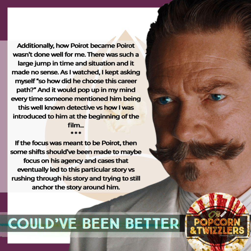 I am on the fence, though, about Act One’s focus on Detective Poirot. I think that is where the marked was missed a little because though he steers the story, he isn’t the story… and if he IS the story, then how those first 15 minutes were used didn’t make me care enough about his story. 🤷🏾♂️