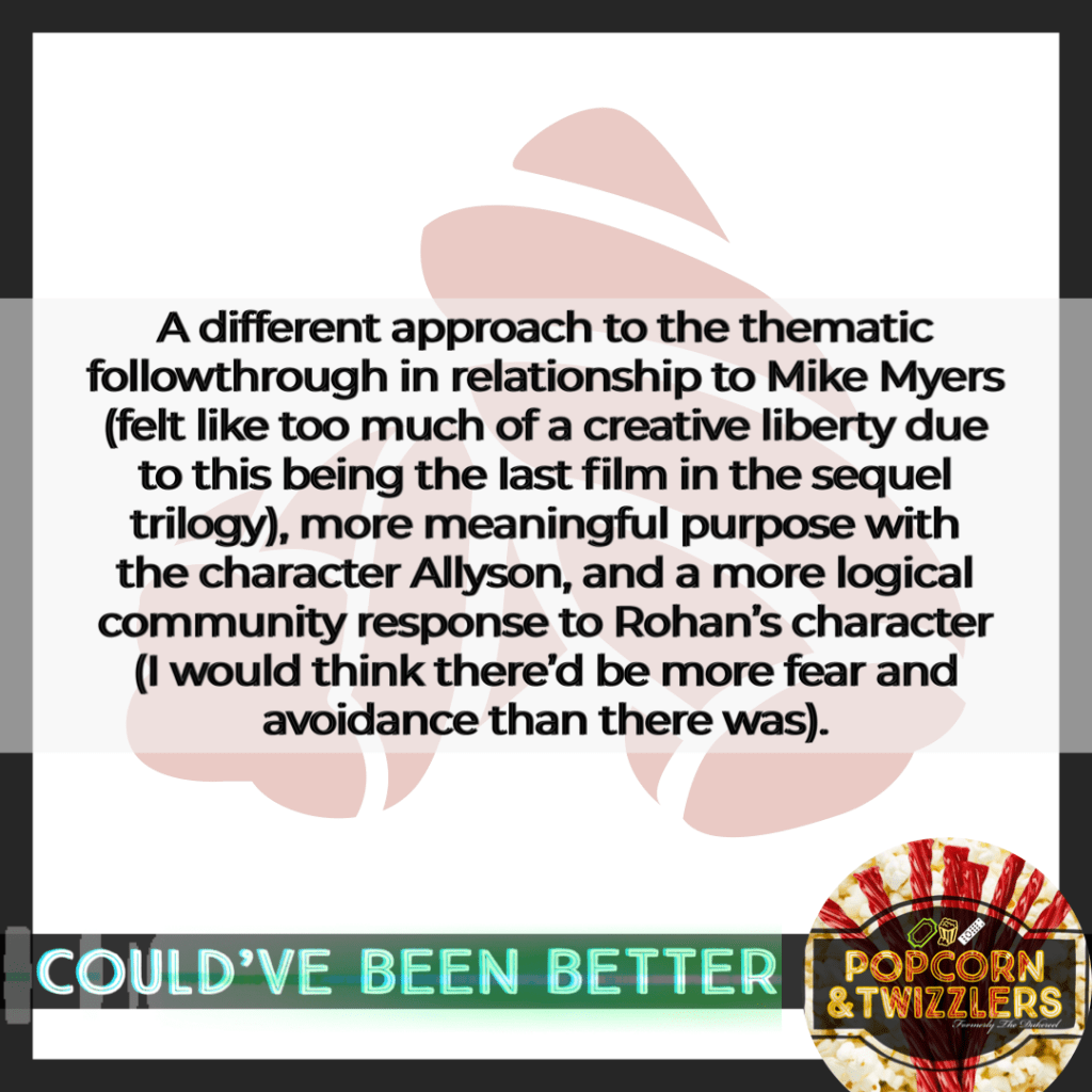 Where the story could’ve used a little more push for me was the first half of the film which seemed to force the theme a bit through the community towards Laurie and the main character, as well as Michael Myers’ literal relationship with the theme that came off a little out of the Halloween norm/experimental/taking creative advantage of this last installment. 🤷🏾♂️